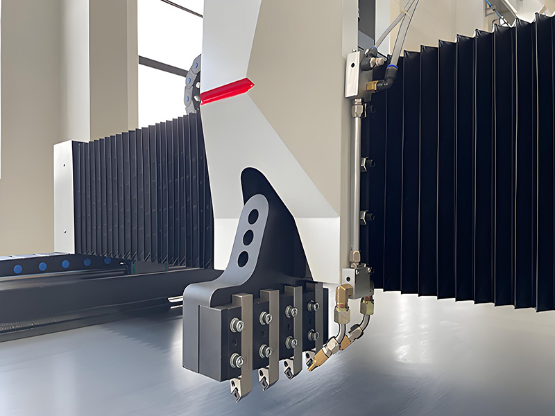 Horizontal grooving machine is based on a horizontal gantry frame, and the machine base and crossbeam are tempered by an electric furnace to eliminate welding stress, ensuring high rigidity and stability of the machine tool; The overall rack undergoes CNC precision machining for one-time clamping, ensuring that the installation surface is parallel and perpendicular; Low alloy, high-strength steel countertops are processed by self planing to be flat and smooth. During processing, the plates remain stationary to avoid wear and tear, making them particularly suitable for precision machining of decorative and mirror finish plates.