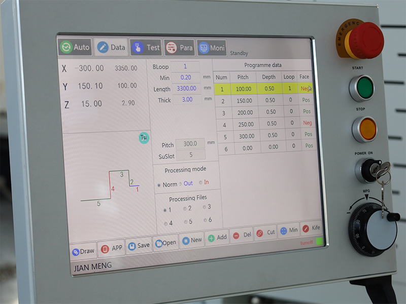 The vertical V groove machine has a groove cutting speed of up to 120 m/min and a repeatability accuracy of ± 0.02 mm, compatible with various plates such as stainless steel and aluminum alloy. Hydraulic automatic clamping system, 15 inch industrial touch screen with one click programming, assists in efficient and precise pre bending processing.