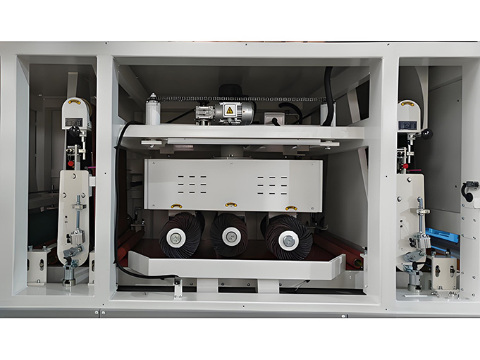 The JM XDP-RPR Vacuum deburring machine achieves efficient and precise deburring and surface treatment functions through the coordinated use of sand belt polishing, universal roller brush edge-rounding, and vacuum adsorption system.